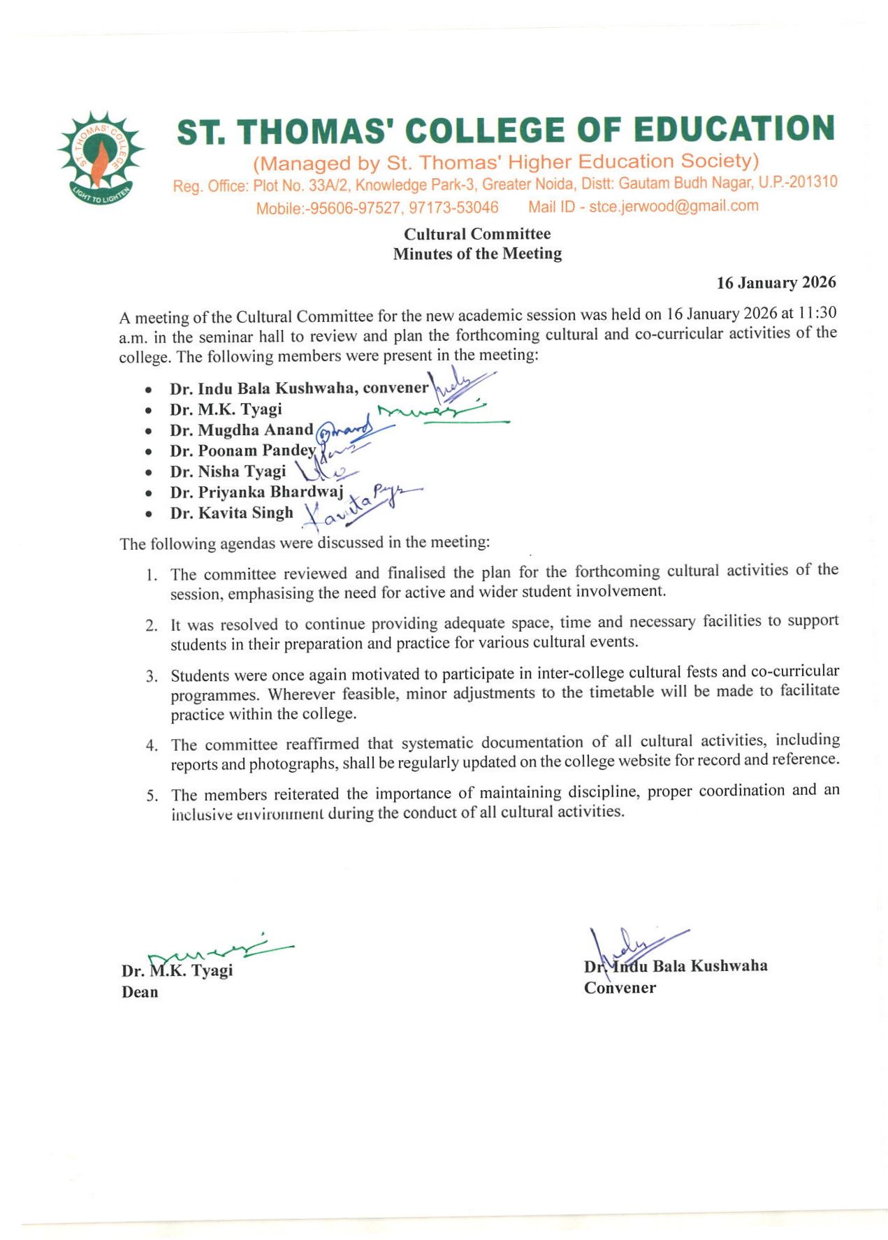 A Christian Minority Institution Managed by St. Thomas’ Higher Education Society